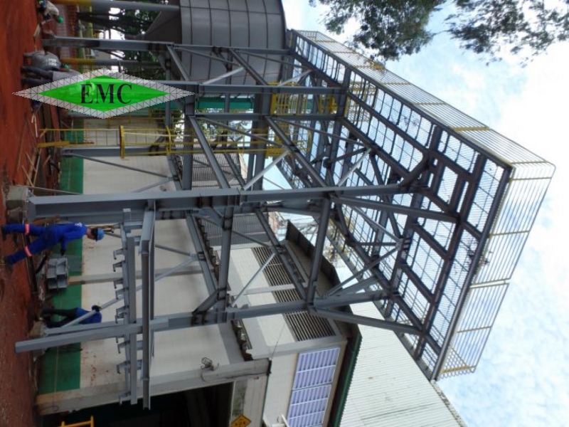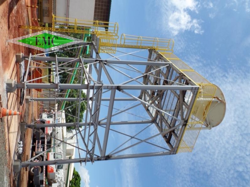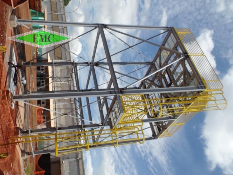Torre para processo de grãos, feita com perfis em alma cheia, escada marinheiro e guarda-corpo.