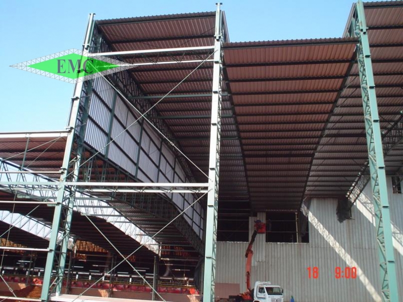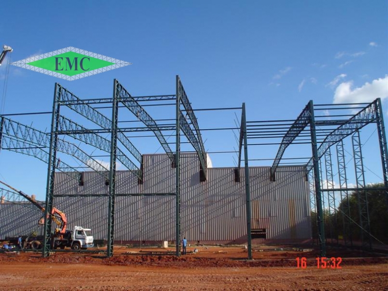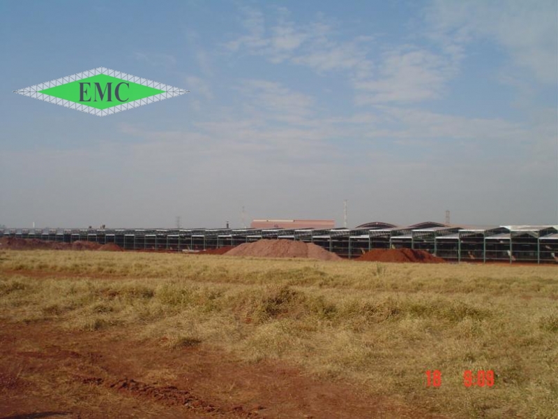 Descrição: Galpão tipo Shedd Europeu tendo 36,00m de vão livre e 450,00m de comprimento.