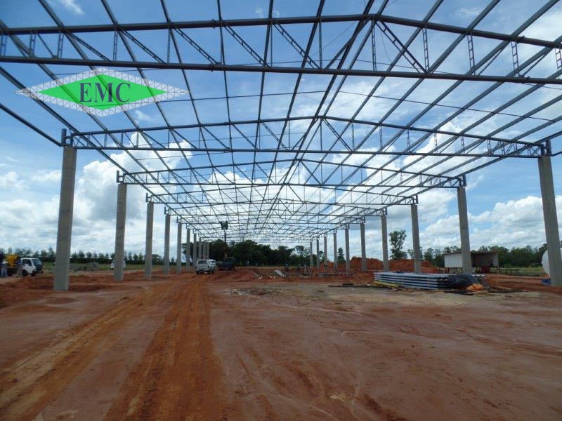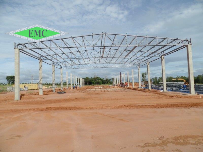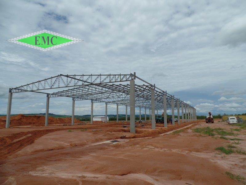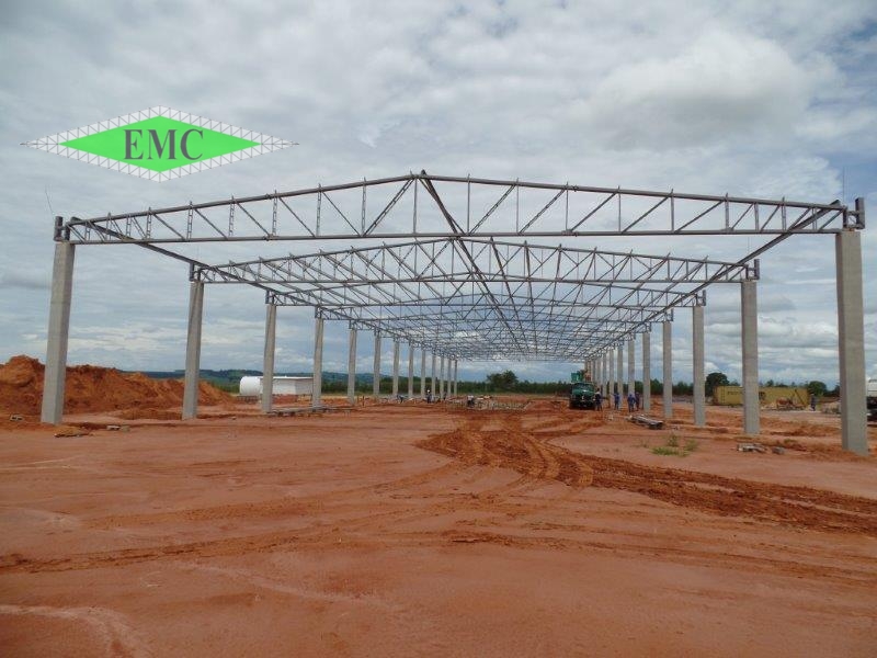 Estrutura Metallica tipo tesoura finck em colunas de concreto, banzos em perfis W e treliçamento em cantoneiras laminadas. Estrutura 100% parafusadas