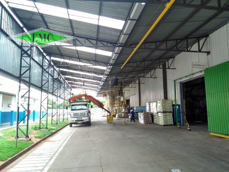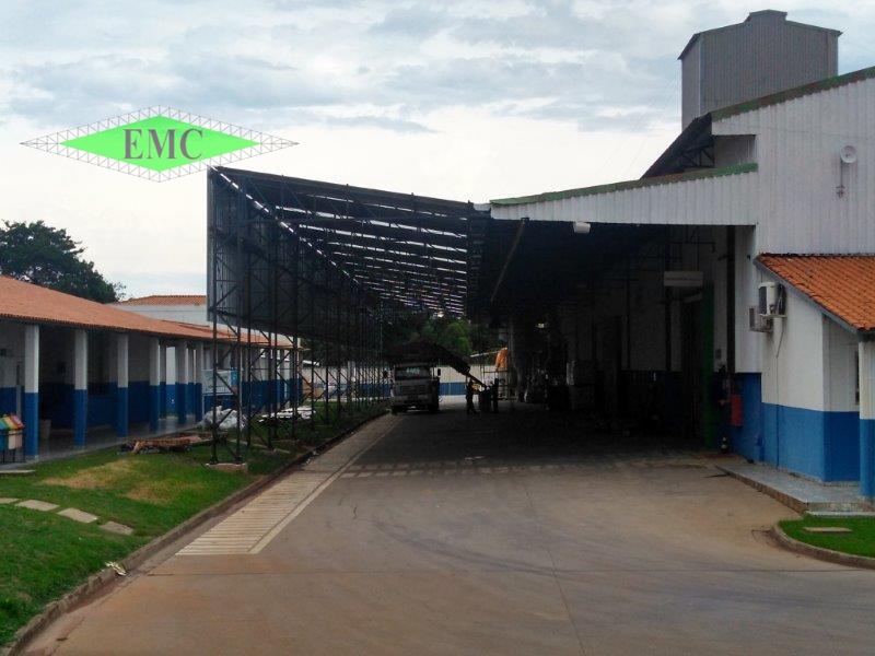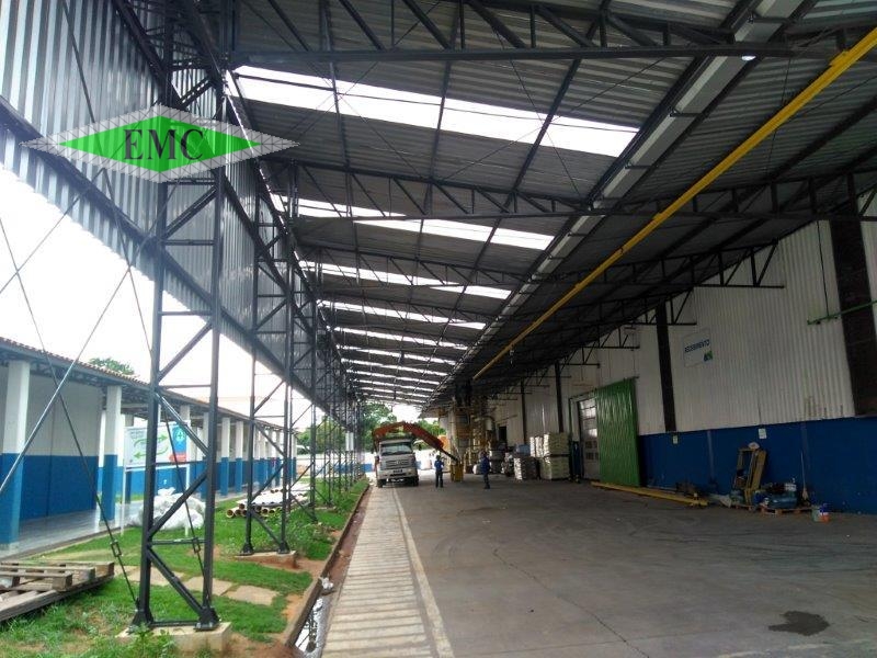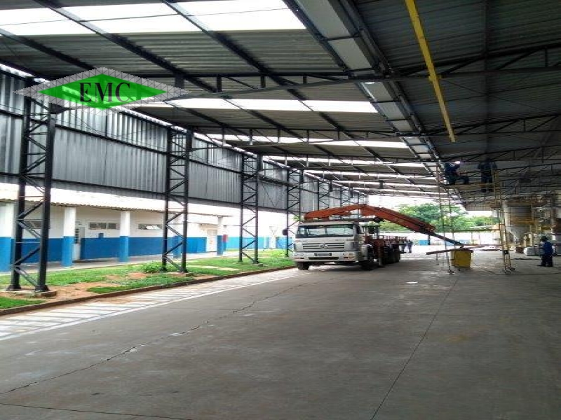 ESTRUTURA METÁLICA EM MEIA ÁGUA COM CALHA CENTRAL , TESOURA FINCK TRELIÇADA E COLUNA TRELIÇADA EM PERFIS DOBRADOS E LAMINADOS
