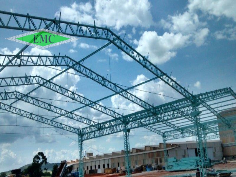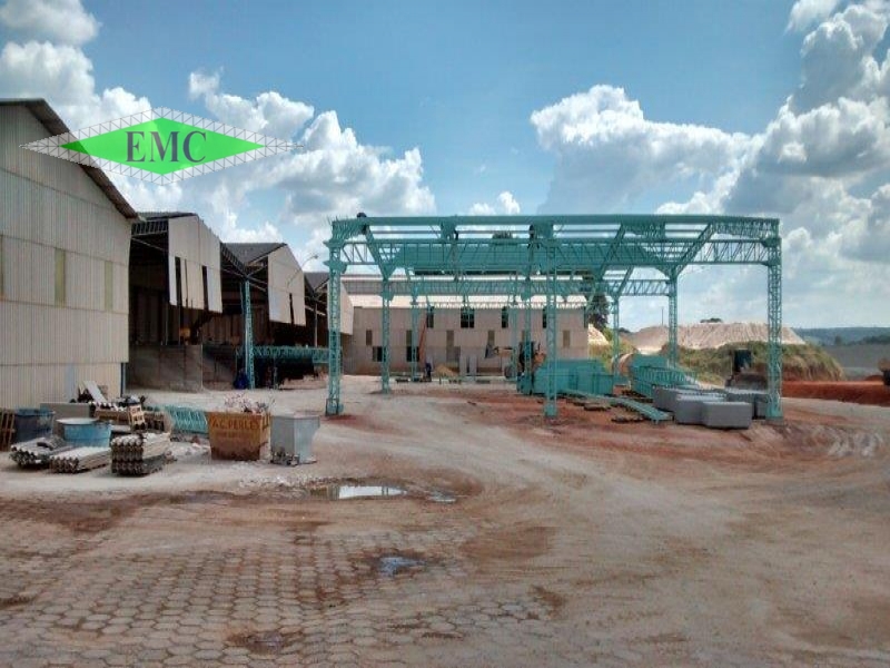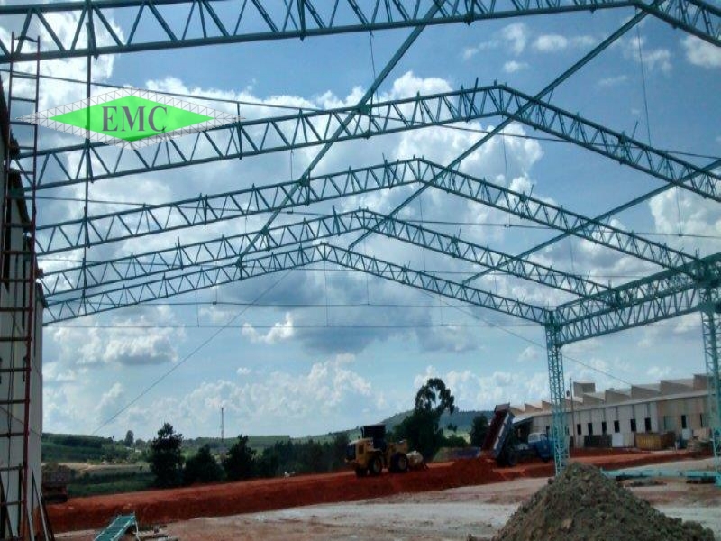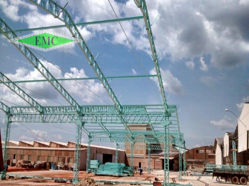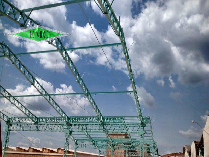 Descrição: ESTRUTURA METÁLICA GALPÃO EM DUAS ÁGUAS , TESOURAS EM BANZO PARALELO FIXADAS EM VIGAS DE TRANSIÇÃO E COLUNAS TRELIÇAS
