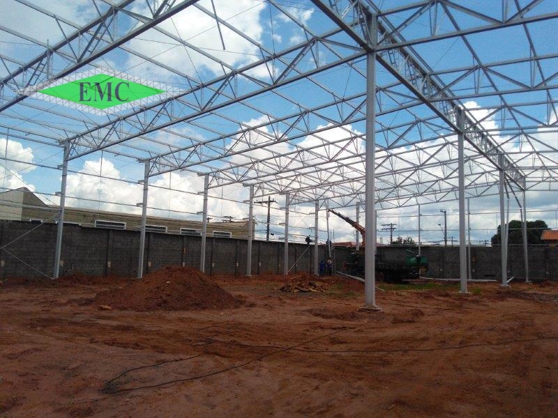 Descrição: ESTRUTURA METÁLICA EM PERFIS LAMINADOS , TESOURA EM BANZOS PARALELOS , LINHA DE COLUNA CENTRAL COM TRELIÇAS , DIMENSÕES 40X40=1600m²